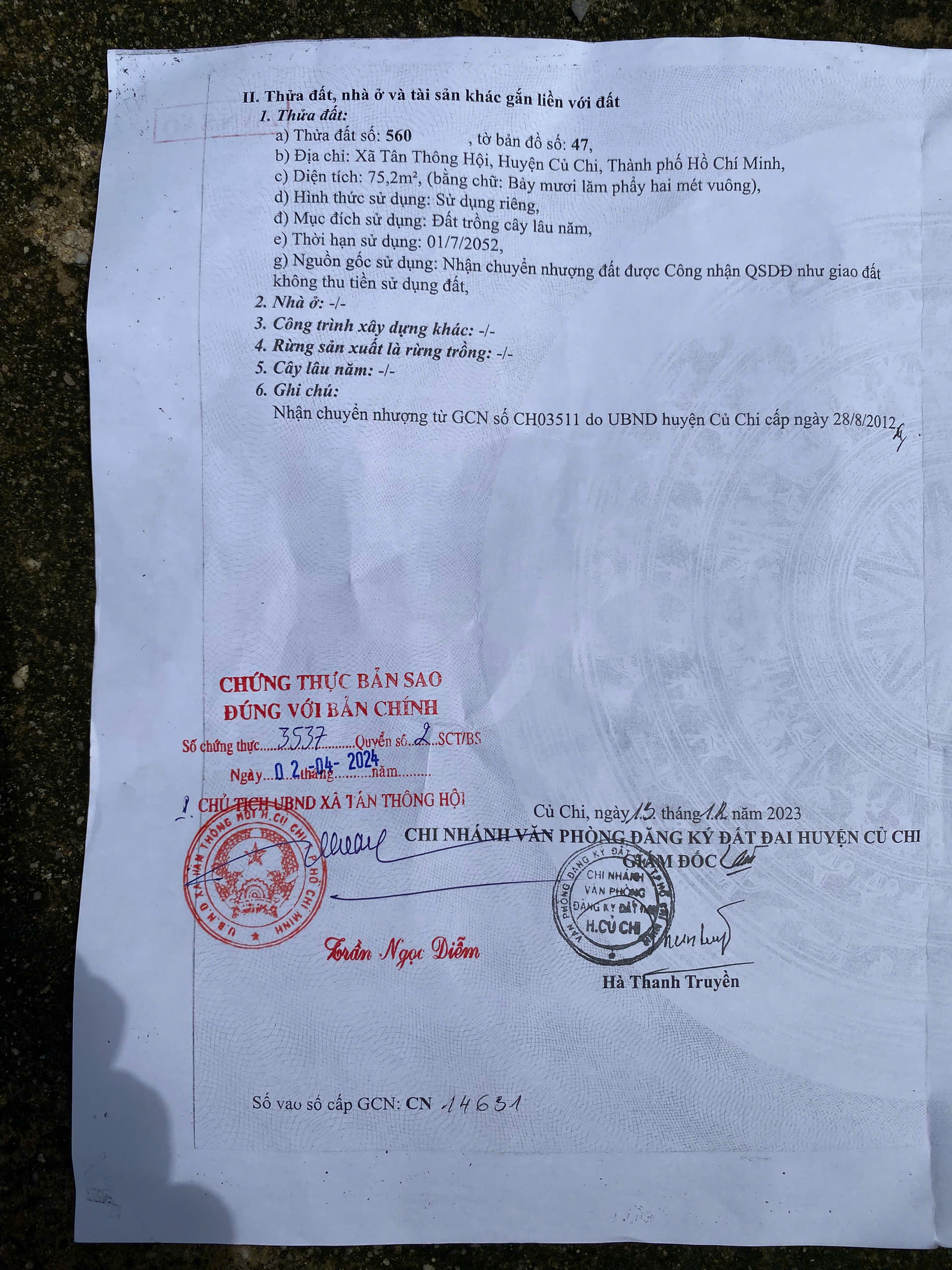 Bán nhà xã Tân Thông Hội huyện Củ Chi